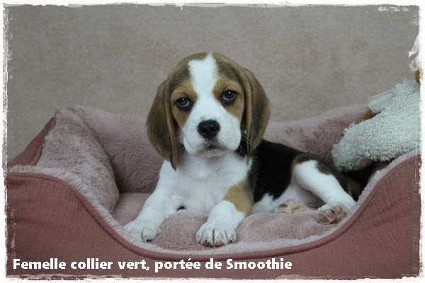 Smoothie et Smarties nous ont offert une nouvelle fois de magnifiques chiots. Cette portée se compose de 5 chiots, 1 male et 4 femelles, tous tricolores.